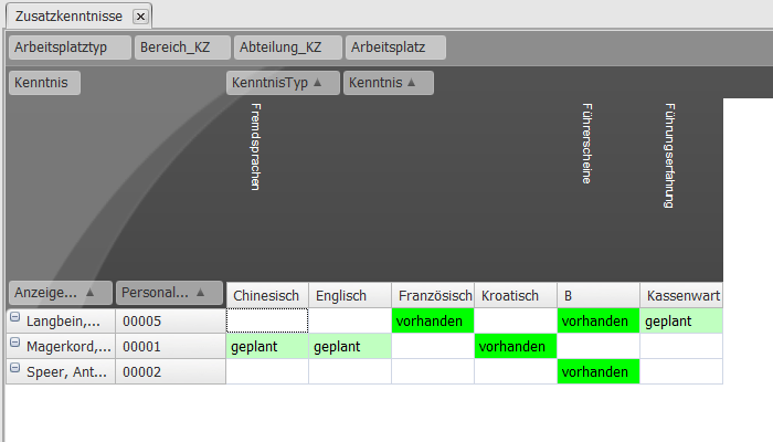 Durch die Pflege Ihrer internen Belegschaftsdaten in Q-Matrix, finden Sie natürlich auch in den eigenen Reihen schnell und zielgerichtet die passenden Mitarbeiter für eine umzubesetzende Position in Ihrem Unternehmen. Die arbeitsplatzspezifischen Qualifikationen werden durch persönliche Fähigkeiten und Kompetenzen Ihrer Mitarbeiter, die im Skill-Management von Q-Matrix hinterlegt sind, ergänzt. In einer umfangreichen GAP-Analyse erkennen Sie auf einen Blick die Schnittmengen von Wunschvorstellungen und Ist-Situation, Sie entdecken Entwicklungspotenziale und belastbare Gründe für oder gegen eine entsprechende Stellenbesetzung.