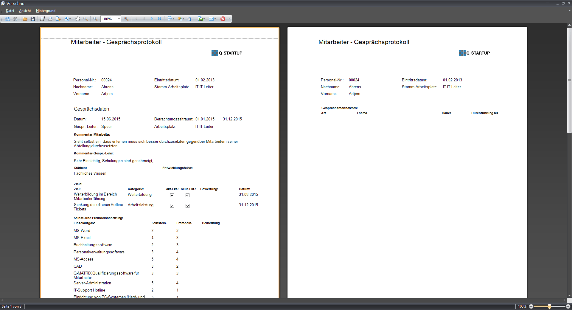 - Gesprächsprotokolle für Personalakte und Mitarbeiter drucken